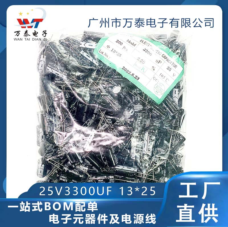 25v3300ufインラインアルミ電解コンデンサ3300uf25vブラック高周波低抵抗13x25プラグインコンデンサ