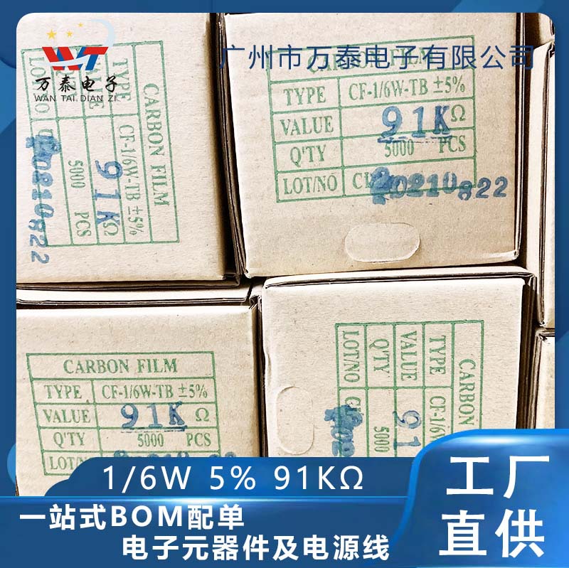 1/8w 1/6w金属膜抵抗5% 91krユーロ91kω インラインカラーリング抵抗