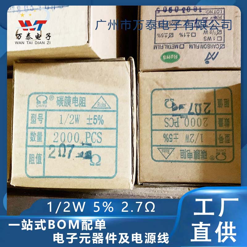 1/2w金属膜抵抗2.7r 2.7ω 5% 全シリーズインライン抵抗