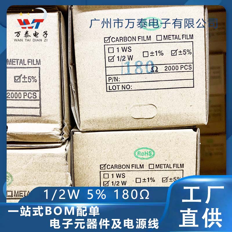 1/2W金属膜抵抗5% 180ユーロ180ω 直挿し四色リング抵抗全シリーズ