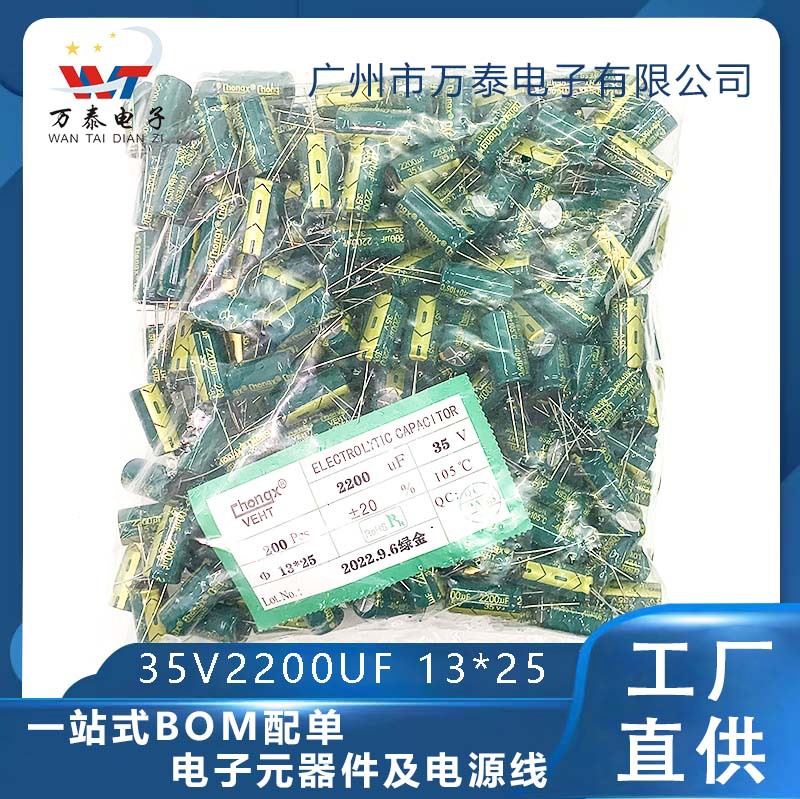 35v2 200ufインライン電解コンデンサ2200uf35v緑金高周波低抵抗13x25電解コンデンサ