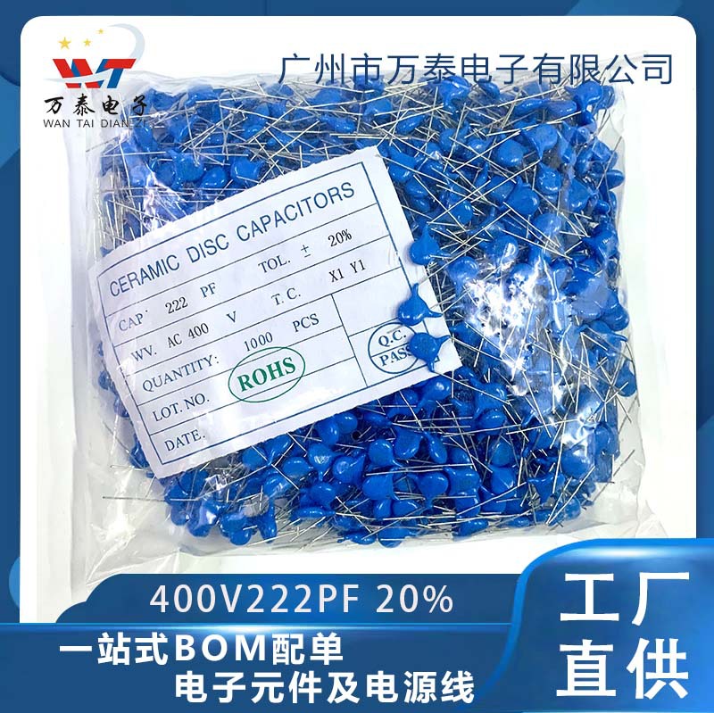 セラミック安全規格yコンデンサ222m/400v p = 10mm 400v222m高圧セラミックコンデンサy1
