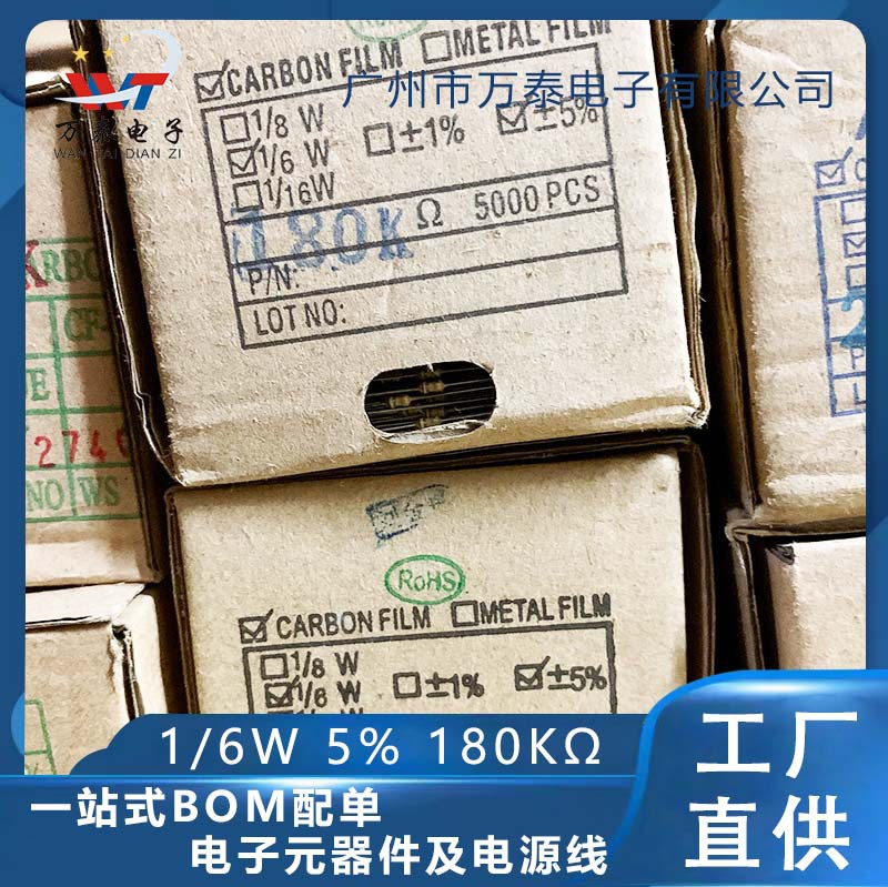 1/8w 1/6w金属膜抵抗5% 180krユーロ180kω インラインカラーリング抵抗