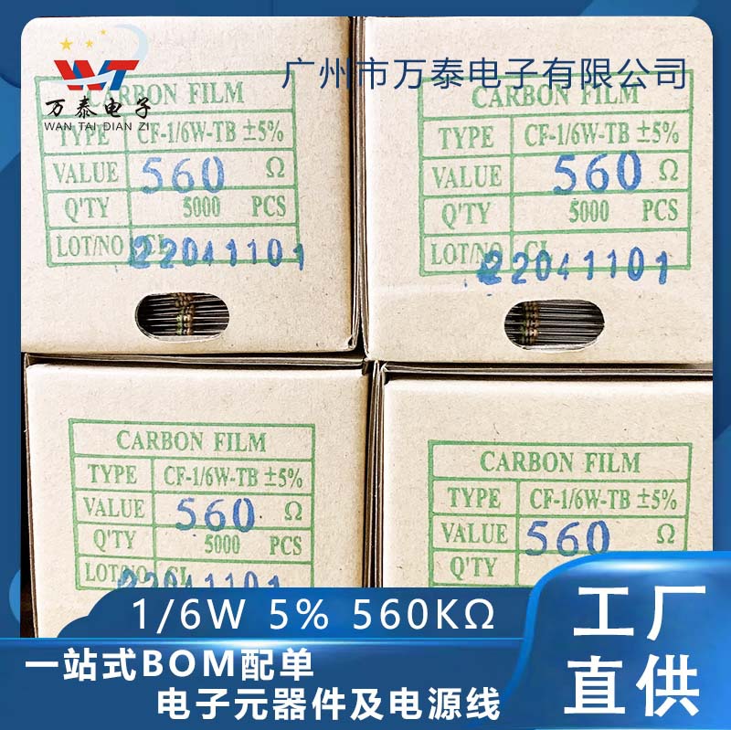 1/8w 1/6w金属膜抵抗5% 560krユーロ560kω インラインカラーリング抵抗