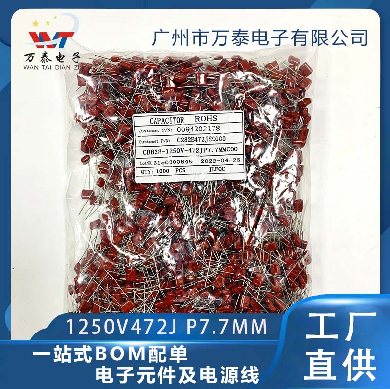 Cbb28薄膜コンデンサー1250v472j p = 7.7mm高圧薄膜コンデンサー新品
