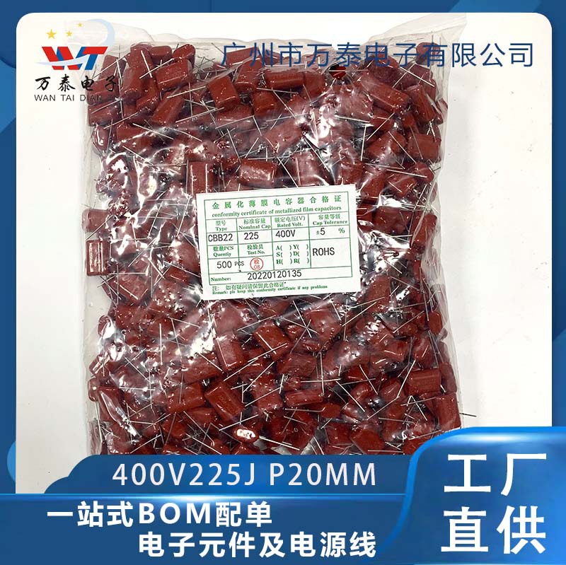 Cbb22コンデンサ400v225j p = 20mm/25mm 2.2uf 225j400v薄膜コンデンサ