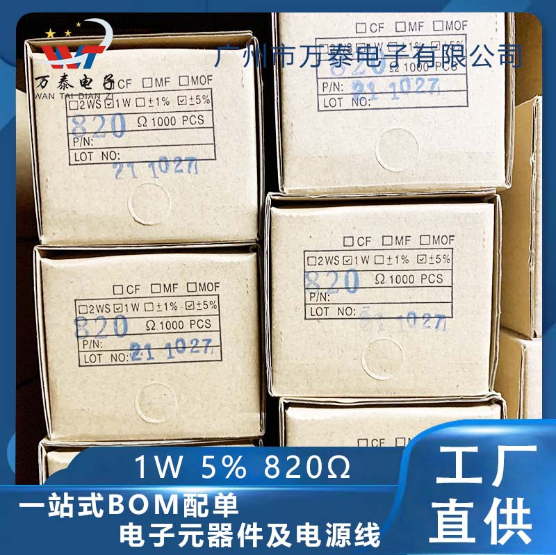 1w金属膜付き抵抗820r 820ω 精度5% 四色リング抵抗