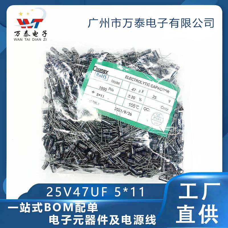 25v47ufインラインアルミ電解コンデンサ47uf25v 5*11高周波低抵抗プラグインコンデンサ