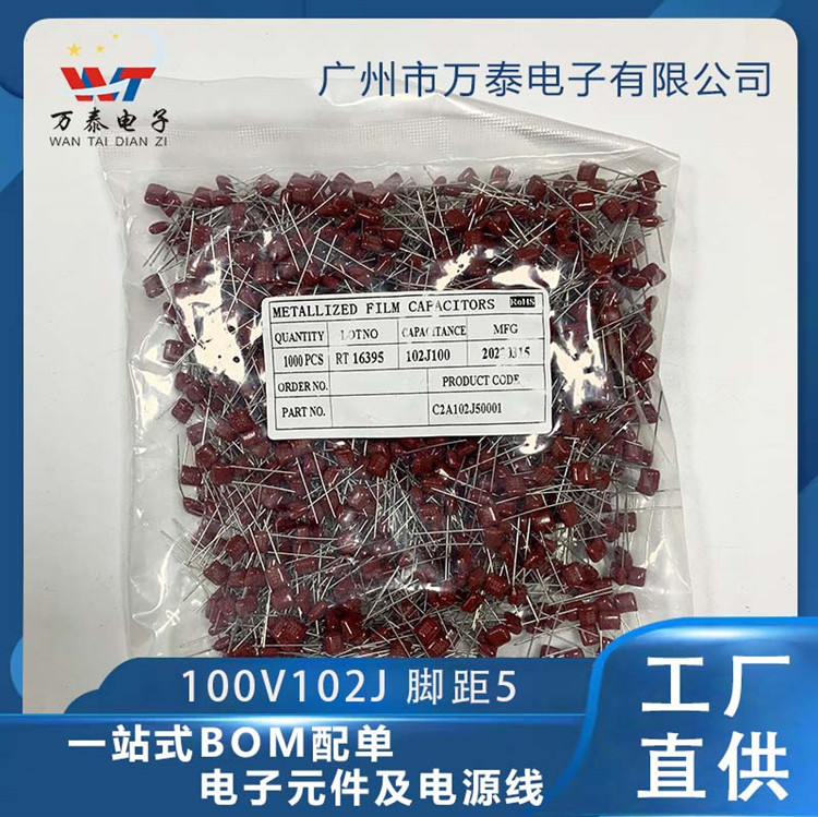 全シリーズ金属膜コンデンサ100v 102j 1nf足距離5 102 j100v cbbコンデンサ