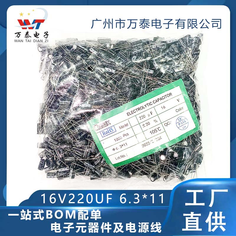 16v220ufインラインアルミ電解コンデンサ220uf16v 6.3*11高周波低抵抗プラグインコンデンサ