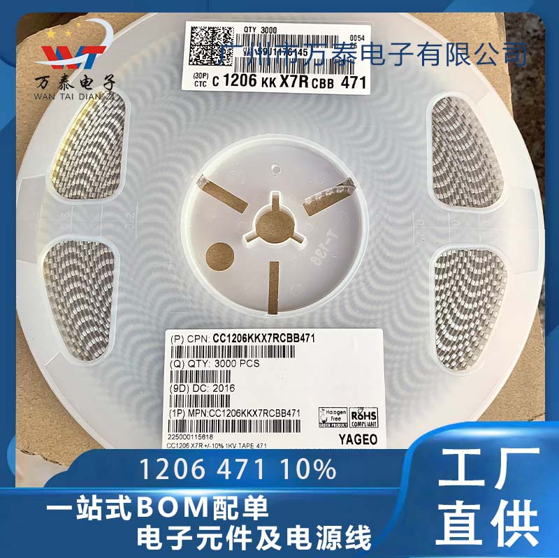 1206国巨大チップコンデンサー471k 10% 1kvセラミックコンデンサーcc1206 kkx7 rbb471