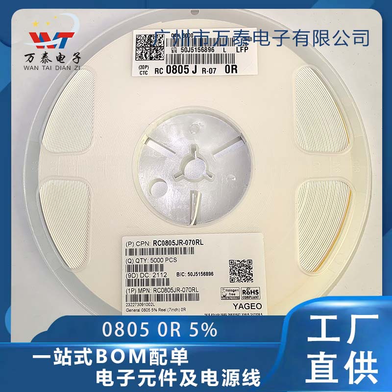 0805国巨大抵抗RC0805JR-070RL 5% 0r-10m高精密抵抗器0805抵抗