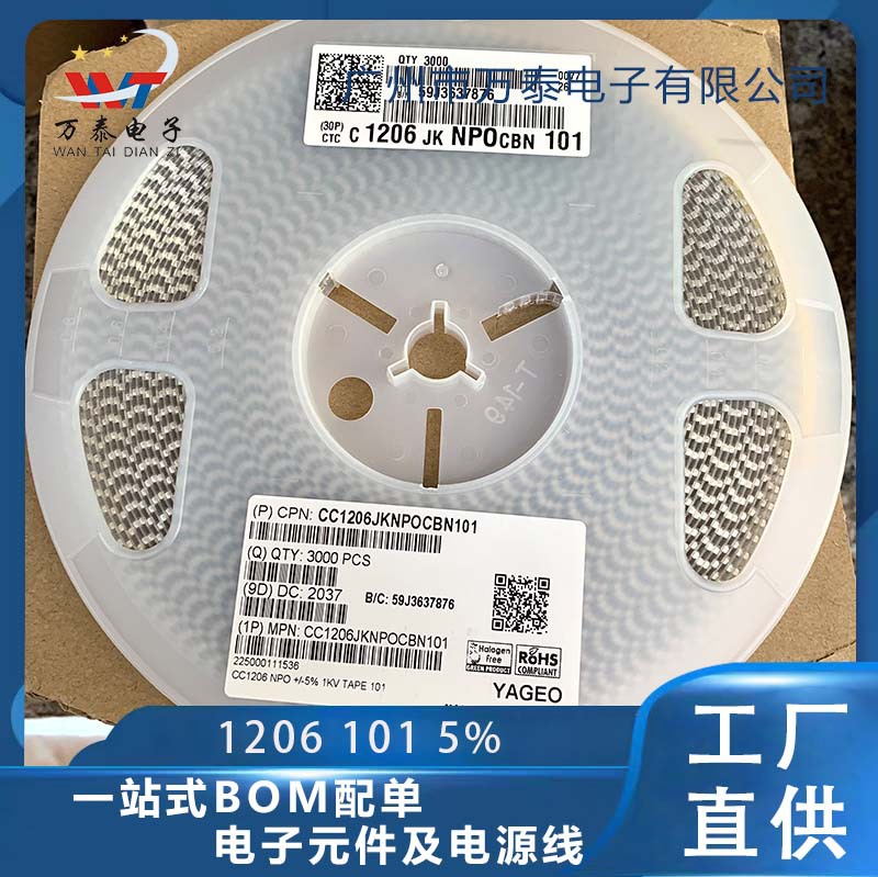 元の国の巨大なコンデンサーcc1206jknpocbn101 1206 100pf ± 5% 1kvパッチコンデンサー