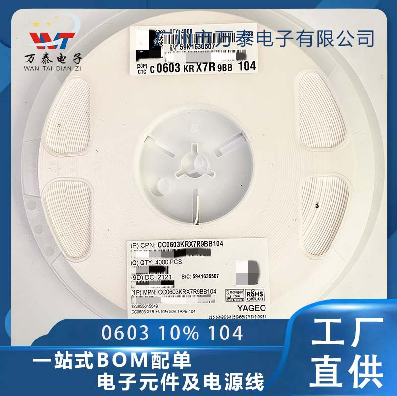 国巨大パッチ静電容量0603 104k 50v 0.1 f 10% uf cc0603 k 7r 9bb 10