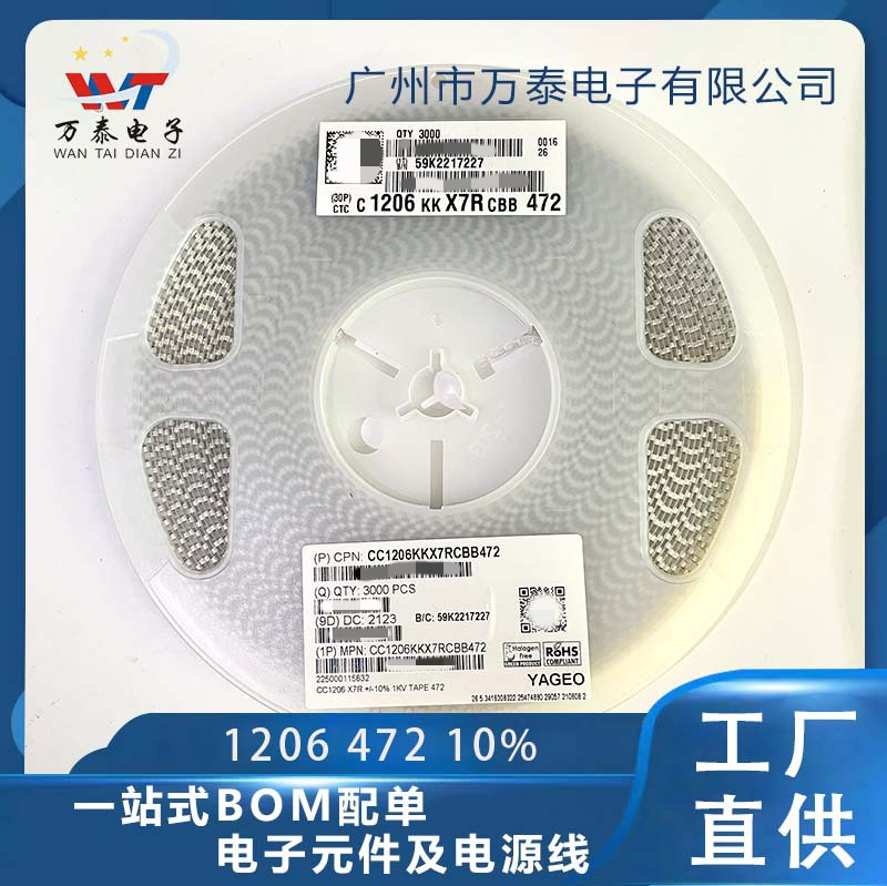 1206国巨大チップコンデンサー472k 10% 1kvセラミックコンデンサーcc1206 kkx7 rbb472