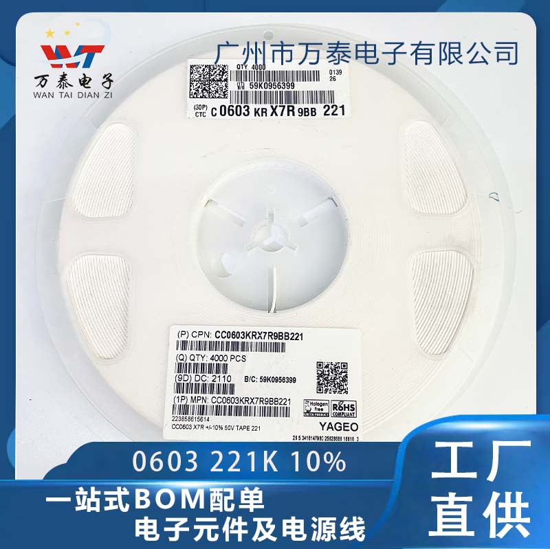 国巨陶磁器コンデンサー0603 10% v 221pf cc0603krx7 9 bb221パッチコンデンサー