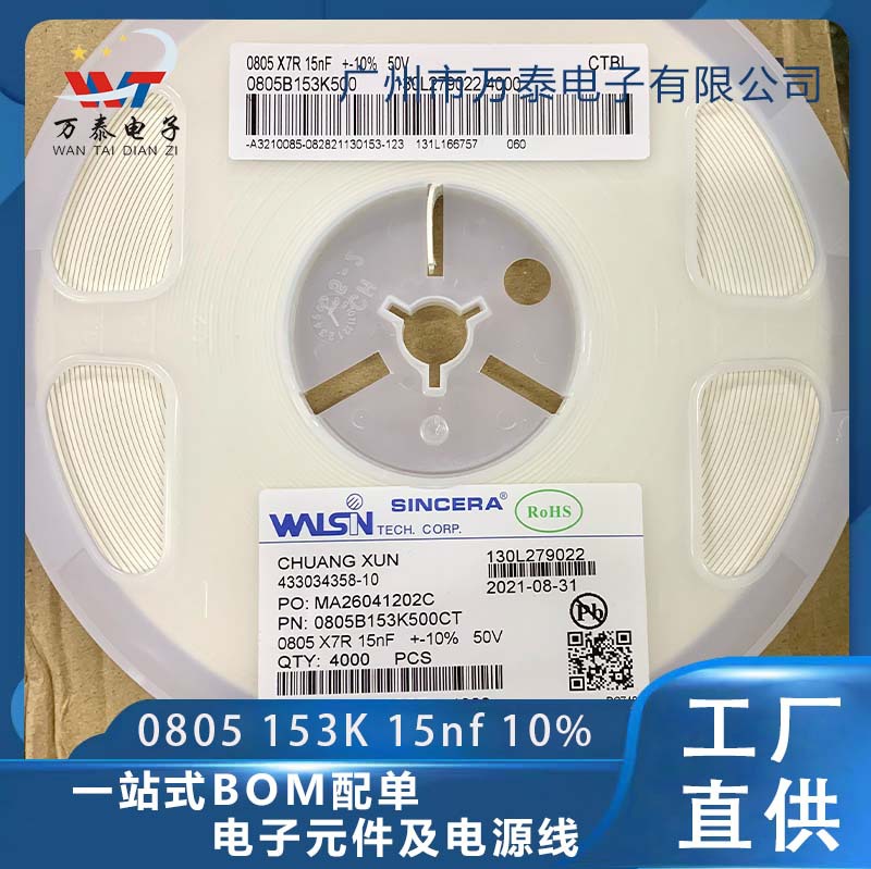 華新パッチコンデンサ0805b153k500ct 15nf (153) 50v 0402 0603 10% 50v