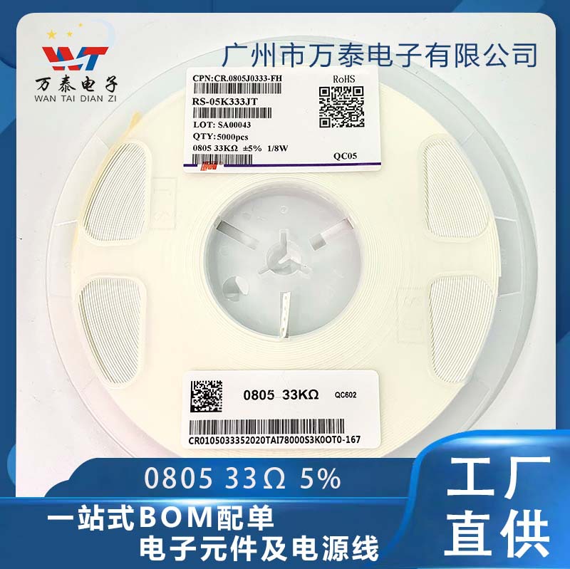0805チップ抵抗33kω 1/8w精度5% CR.0805J0333-FMチップ抵抗風華
