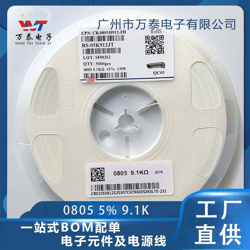 チップ抵抗0805j 9.1k 5% 0805f 1% 9.1kユーロ0805抵抗器メーカー直販