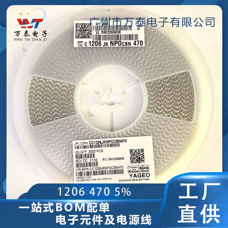 1206国巨大チップコンデンサ470k 5% 1kvセラミックコンデンサcc1206 jknpocbn470