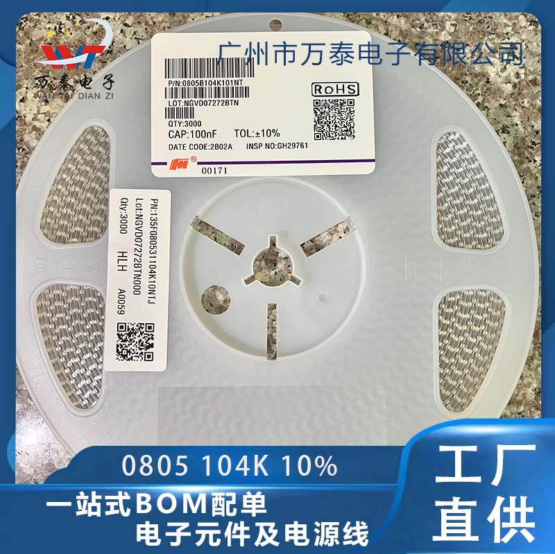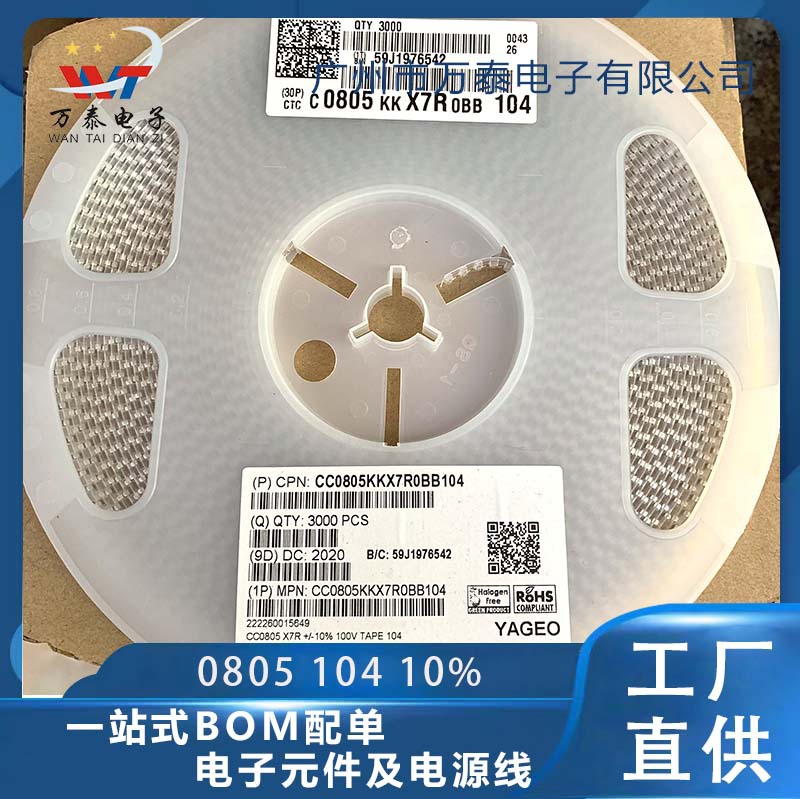 0805 104 nf (10%) ± 100v国巨大チップコンデンサcc0805kk7robb104コンデンサ