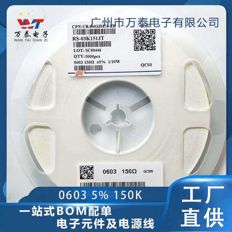 チップ抵抗0603j 150k 5% 0603f 1% 150kユーロ0603抵抗器メーカー直販