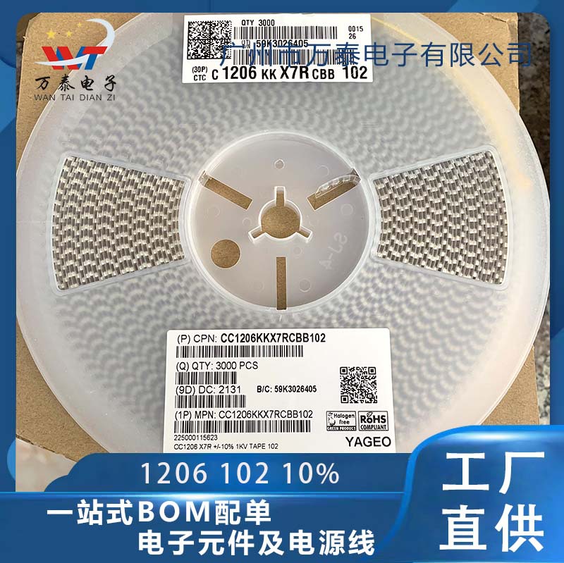 国巨大パッチコンデンサー1206 102k 1000v 1kv 10% cc1206 kkx7 rbb102コンデンサー