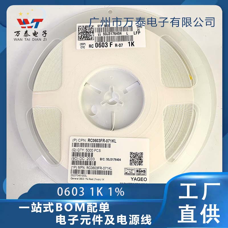 チップ抵抗0603j 1k 5% 0603f 1% 1kユーロ0603抵抗器RC0603FR-071KL