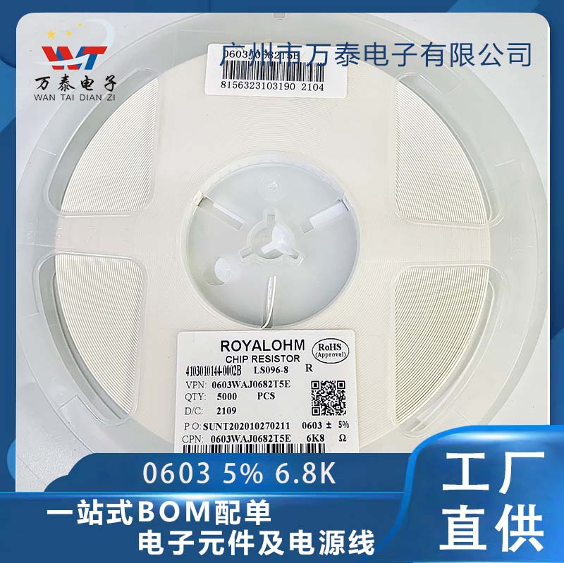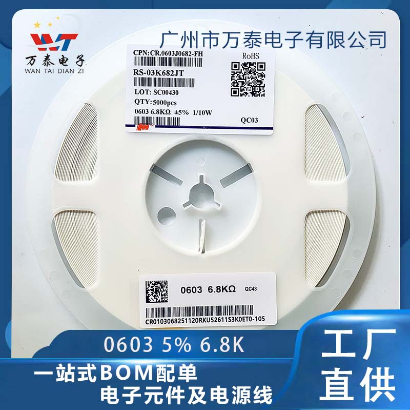 0603チップ抵抗5% 精度6.8k 6.2k 7.5k 8.2k 9.1k 10k 5000pcs抵抗