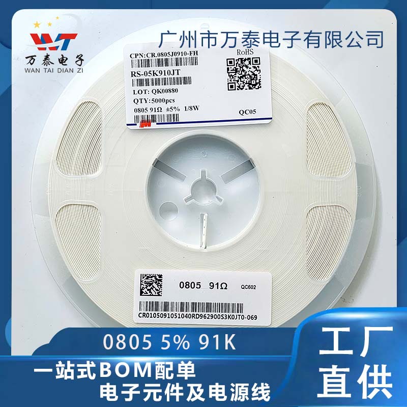 チップ抵抗0805j 91k 5% 0805f 1% 91kヨーロッパ0805抵抗器メーカー直販