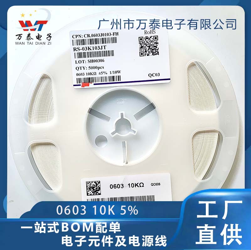 チップ抵抗0603 10k 100k 1/10w精度5% jレンジ厚音響抵抗0r、1r-10m