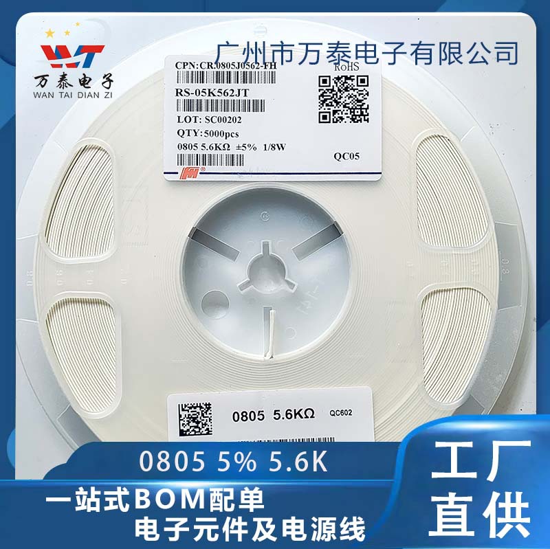 チップ抵抗0805j 5.6k 5% 0805f 1% 5.6k欧0805抵抗器メーカー直販