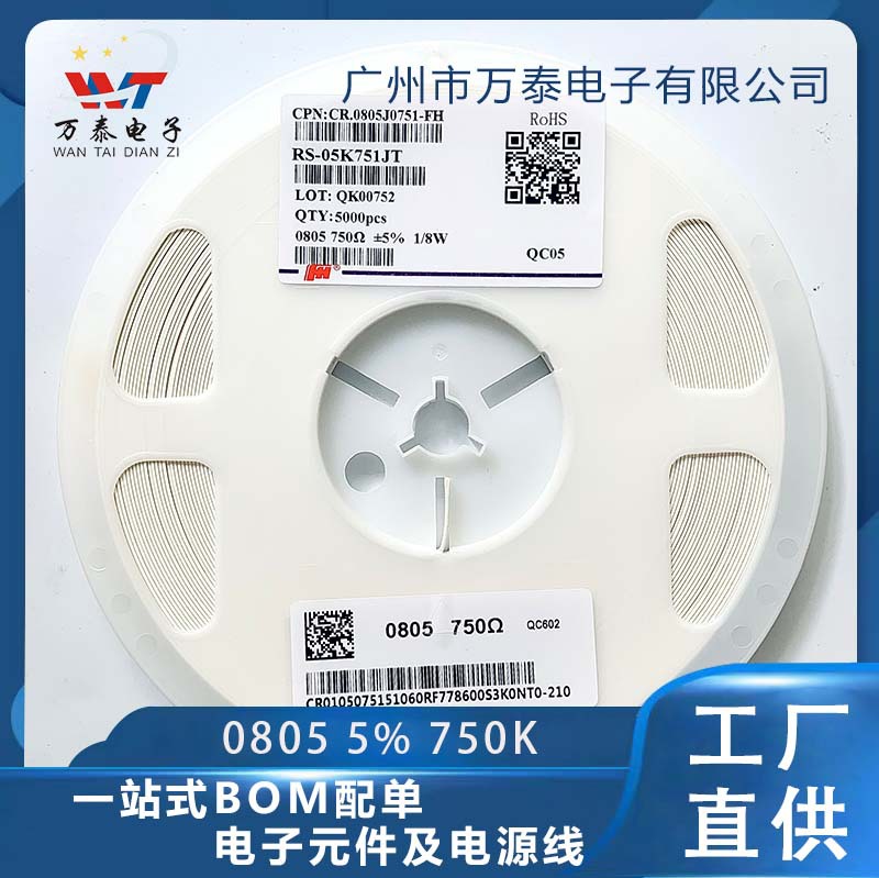 チップ抵抗0805j 750k 5% 0805f 1% 750kユーロ0805抵抗器メーカー直販