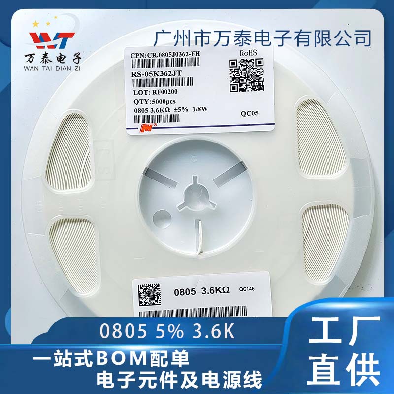 チップ抵抗0805j 3.6k 5% 0805f 1% 3.6k欧0805抵抗器メーカー直販