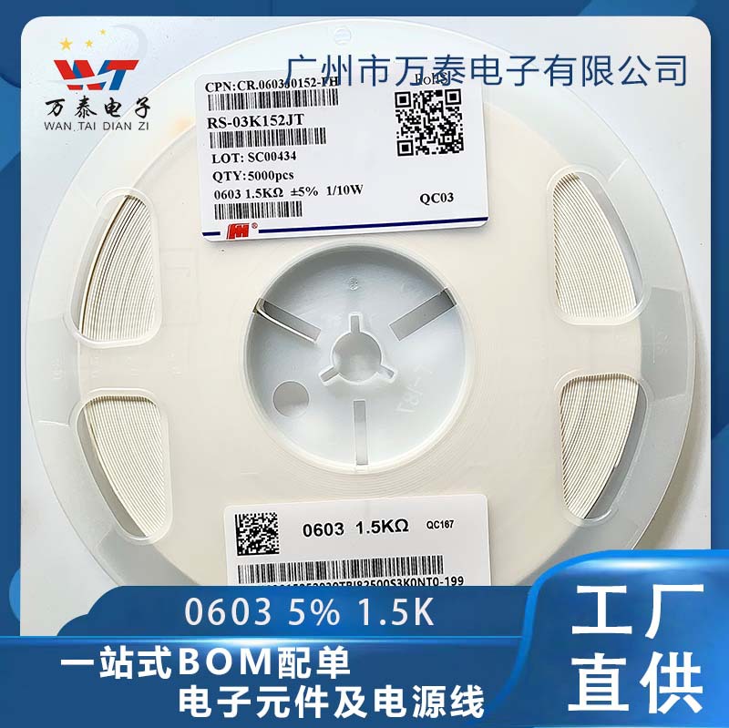 風華チップ抵抗0603 1.5k精度5% 原装現物全シリーズ風華チップ抵抗