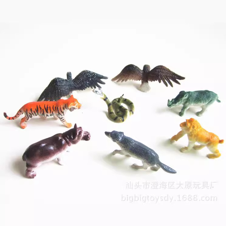 8種類の中実シミュレーション動物セット子供玩具プラスチック動物模型砂盤置物蛇飛鳥鷹カバ