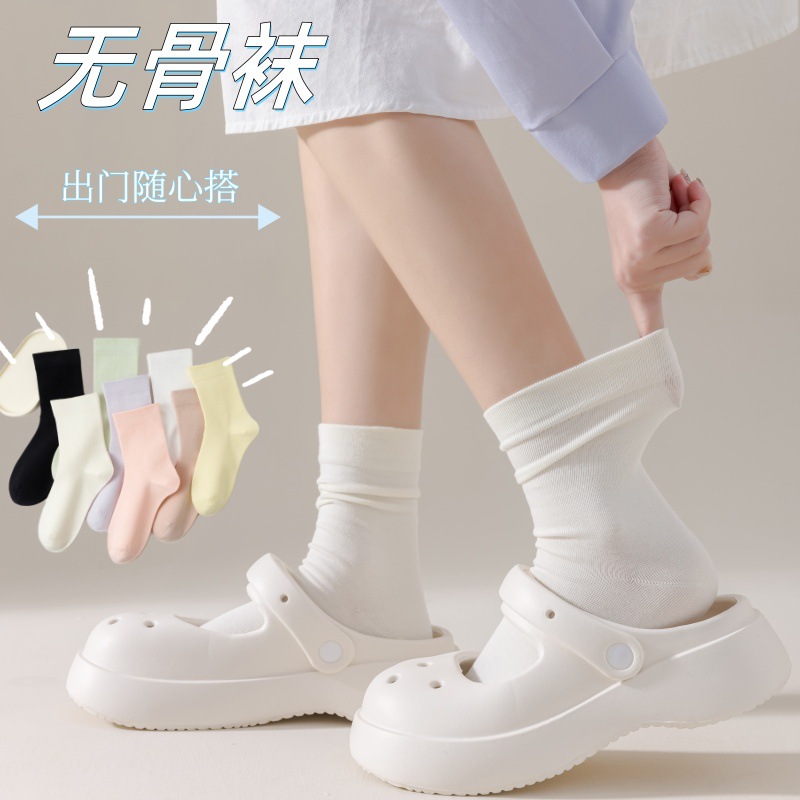 骨なし監禁靴下白女性のミッドカーフソックス純綿イントレンディなハイトップソフトワックス状ルーズストッキング吸汗性パイルソックス