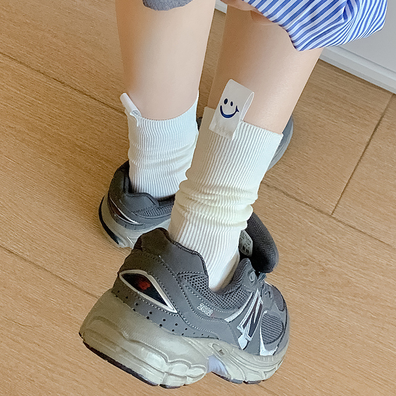 春夏の白いふくらはぎの靴下の女性の韓国版insファッションの靴下のかかとの笑顔の布の標準のスタッカの靴下の日系は中筒の靴下を引き出します。