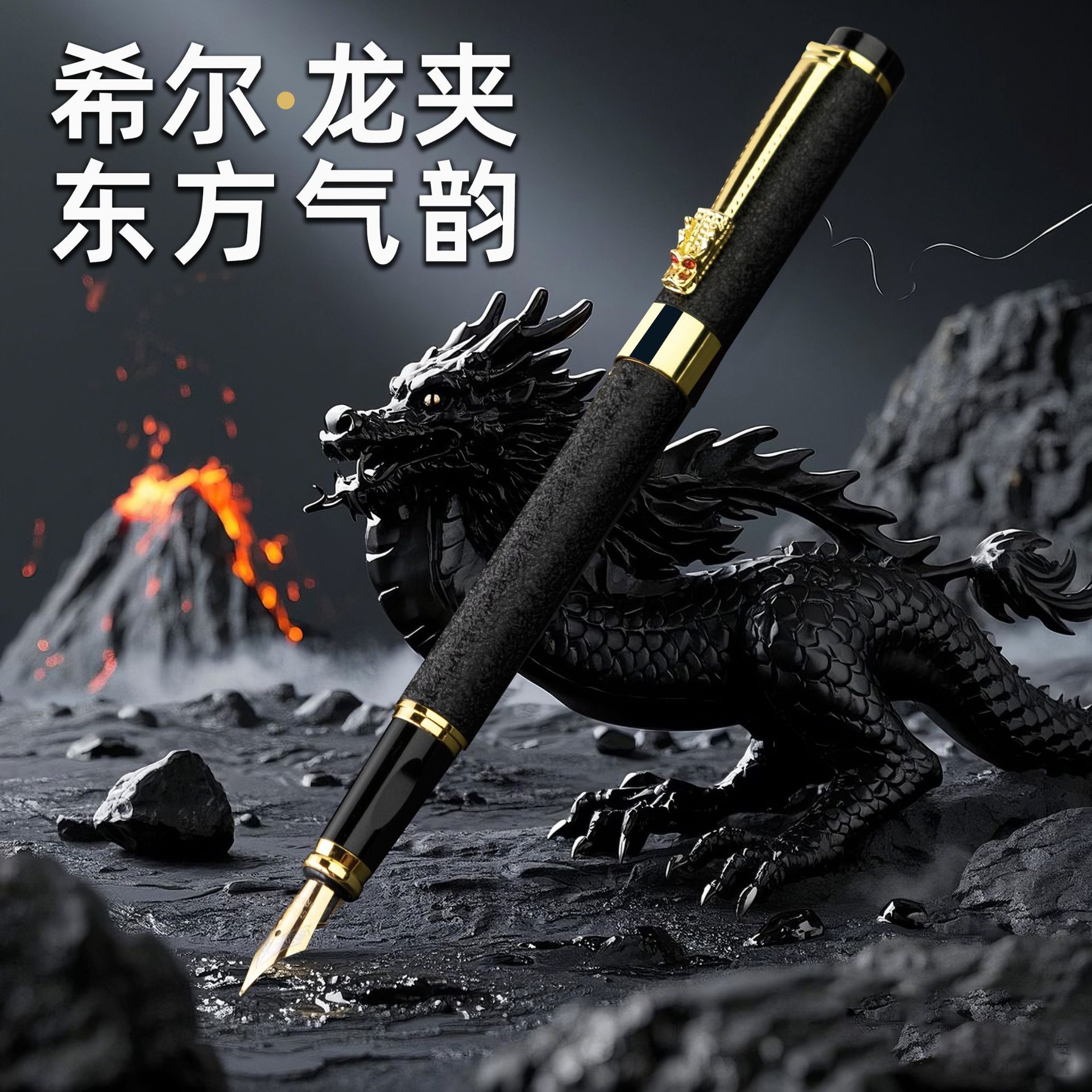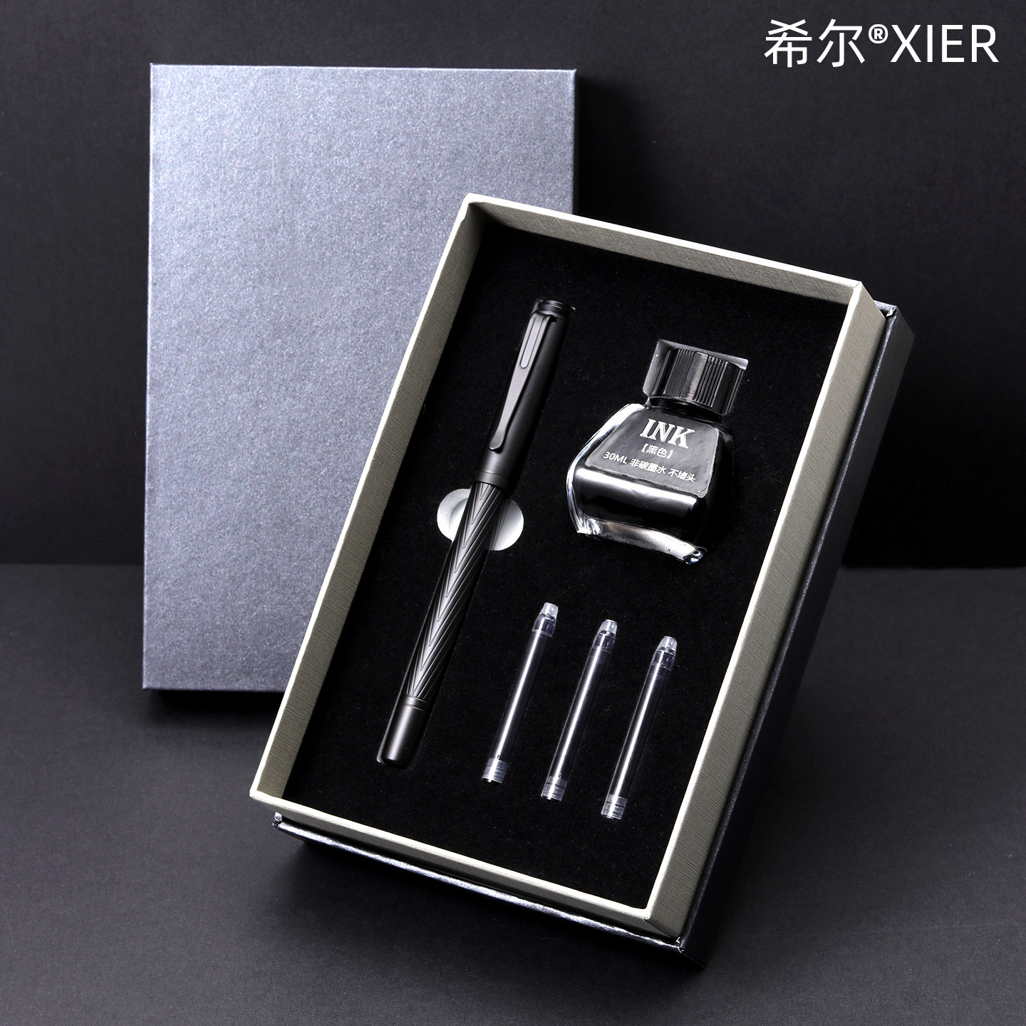 ヒルブラック金属ペンビジネスギフトペンカスタムロゴ小学生書道練習字正姿ペン
