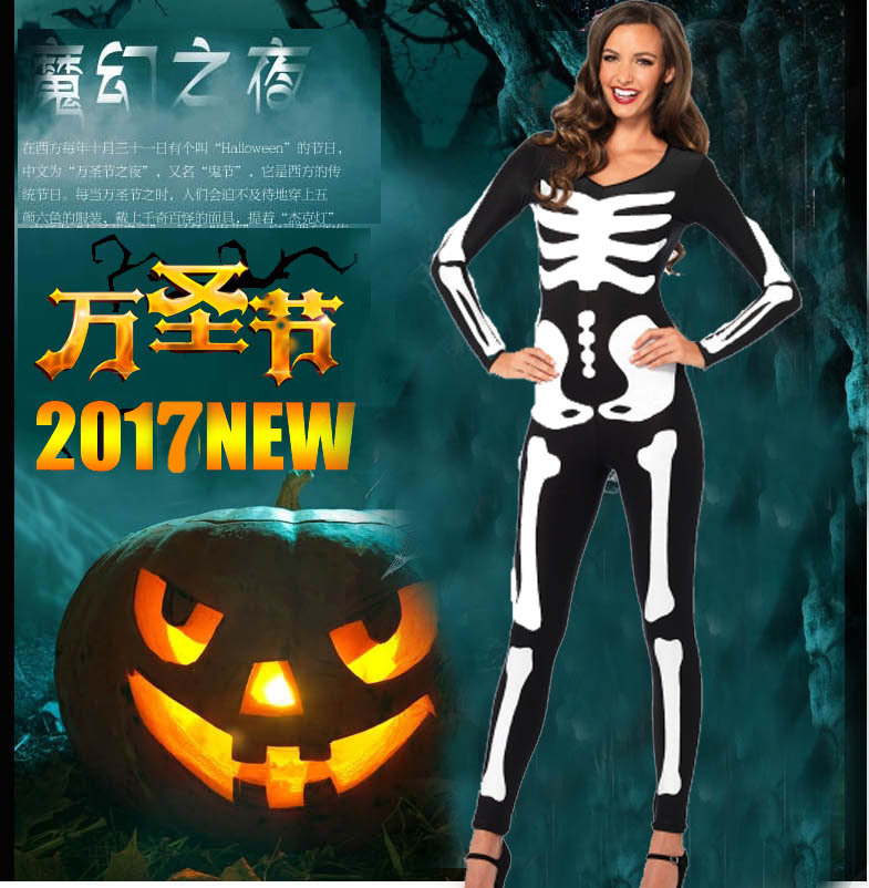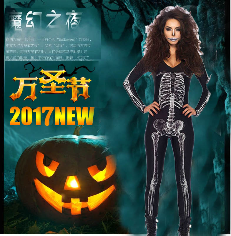 欧米のクリスマスの骨格のスカルの恐怖の鬼衣のハロウィンの服装の卸売りの連体服の新型のワンピース