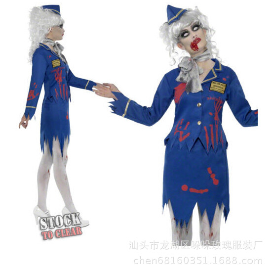 ハロウィーン鬼節恐怖血なまぐさい血を帯びた空姉服女ゾンビ乾燥死体服夜店コスプレ学生服