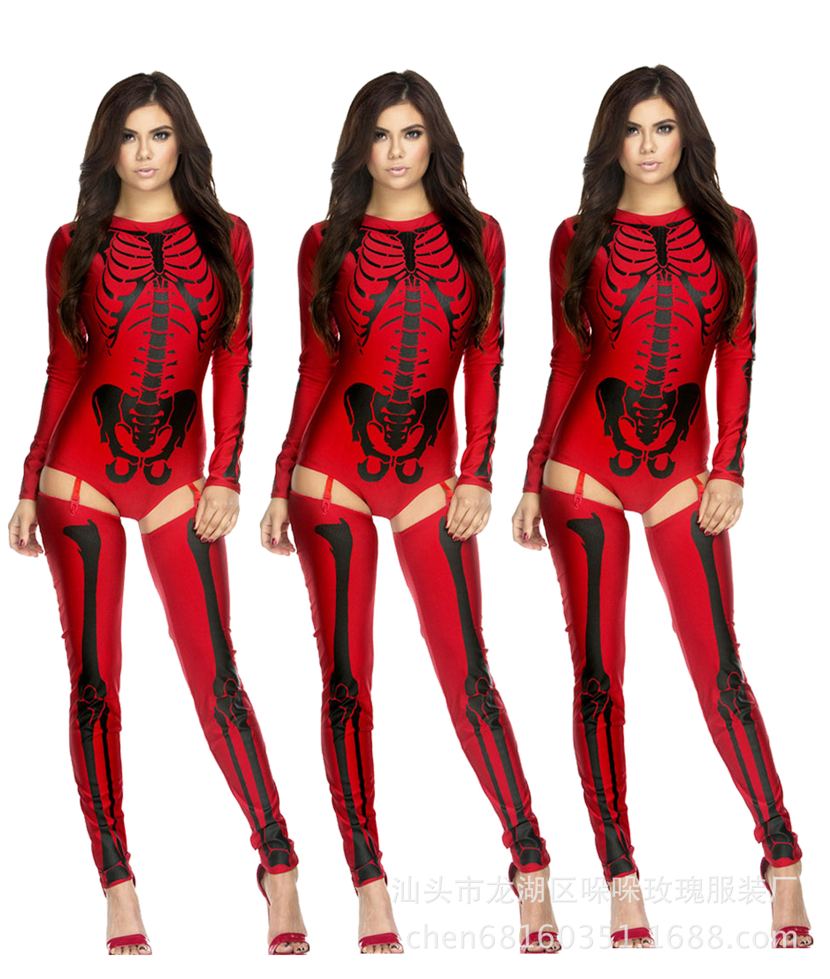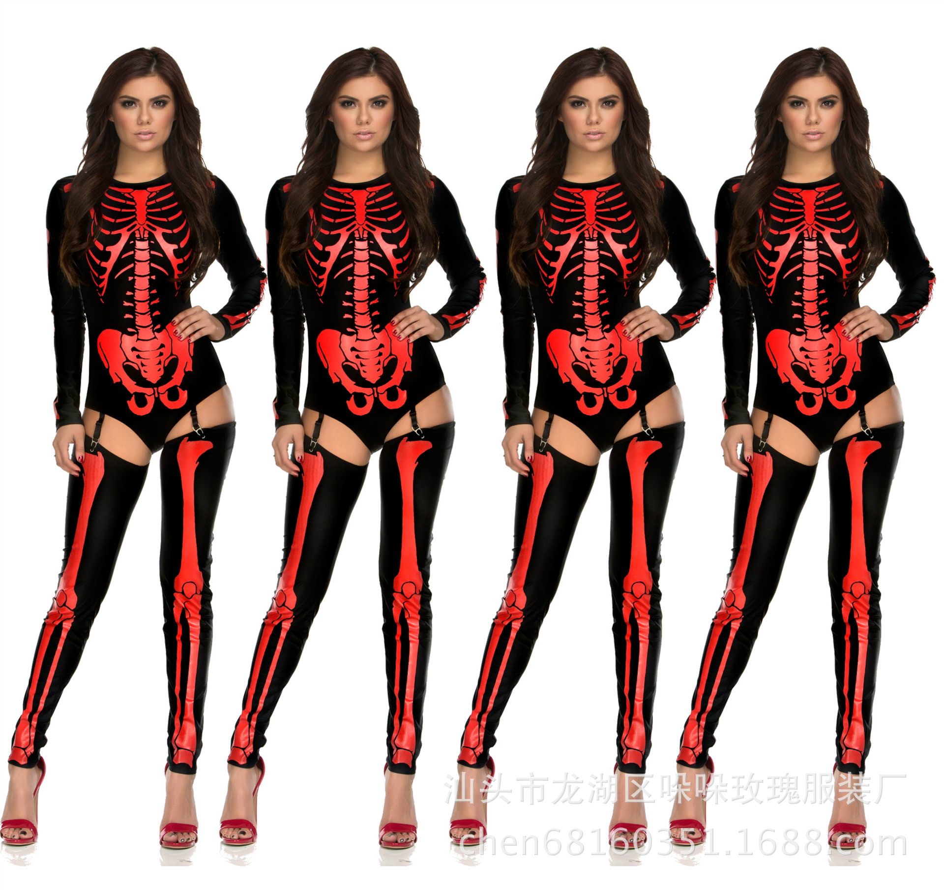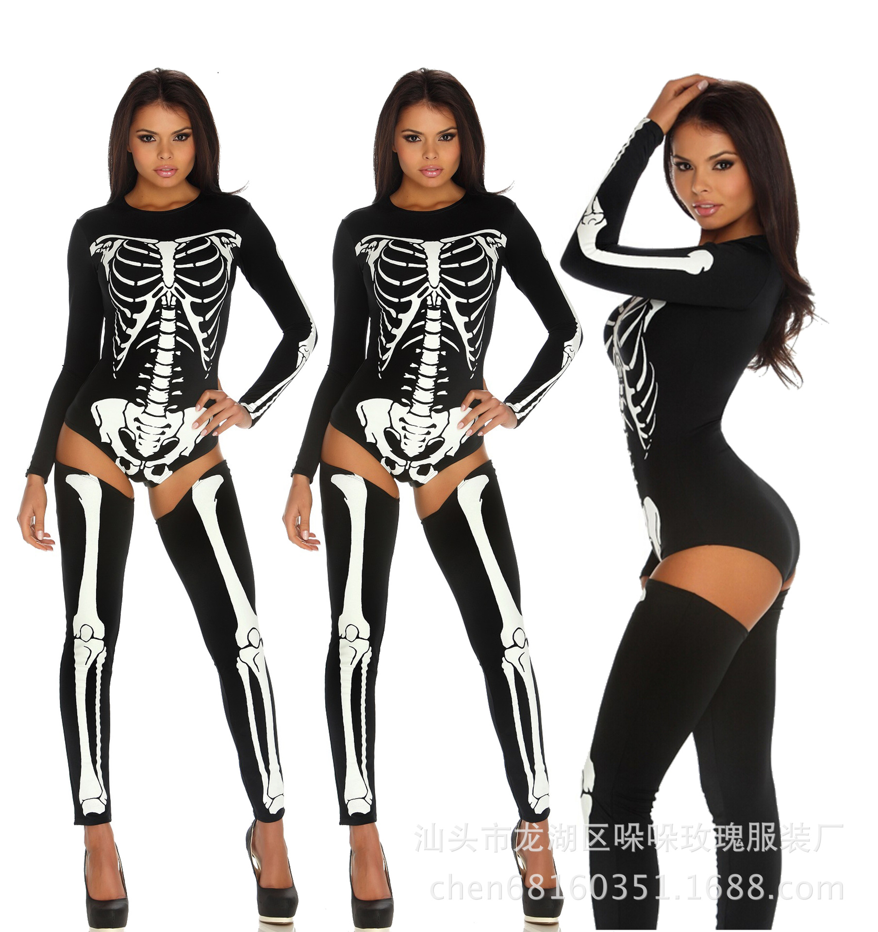 新型バーds演出服ハロウィンお化け祭り舞踏会パーティー女性頭蓋プリント架夜場リード衣装