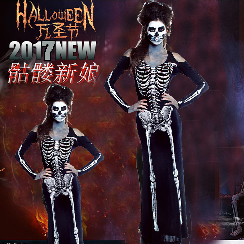 輸出鬼節服装女吸血鬼ゾンビ服ハロウィーン鬼花嫁化粧舞踏会パーティー女頭蓋