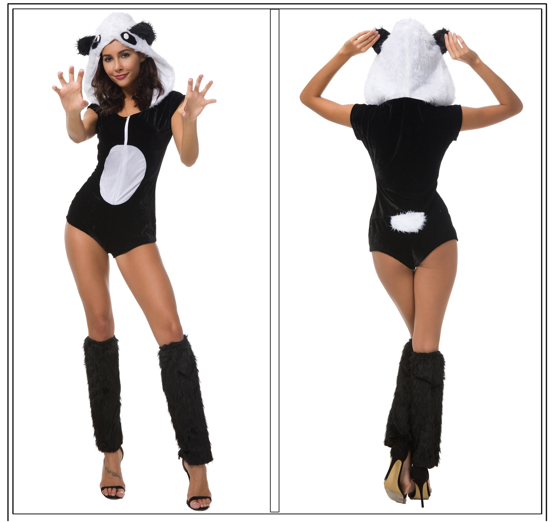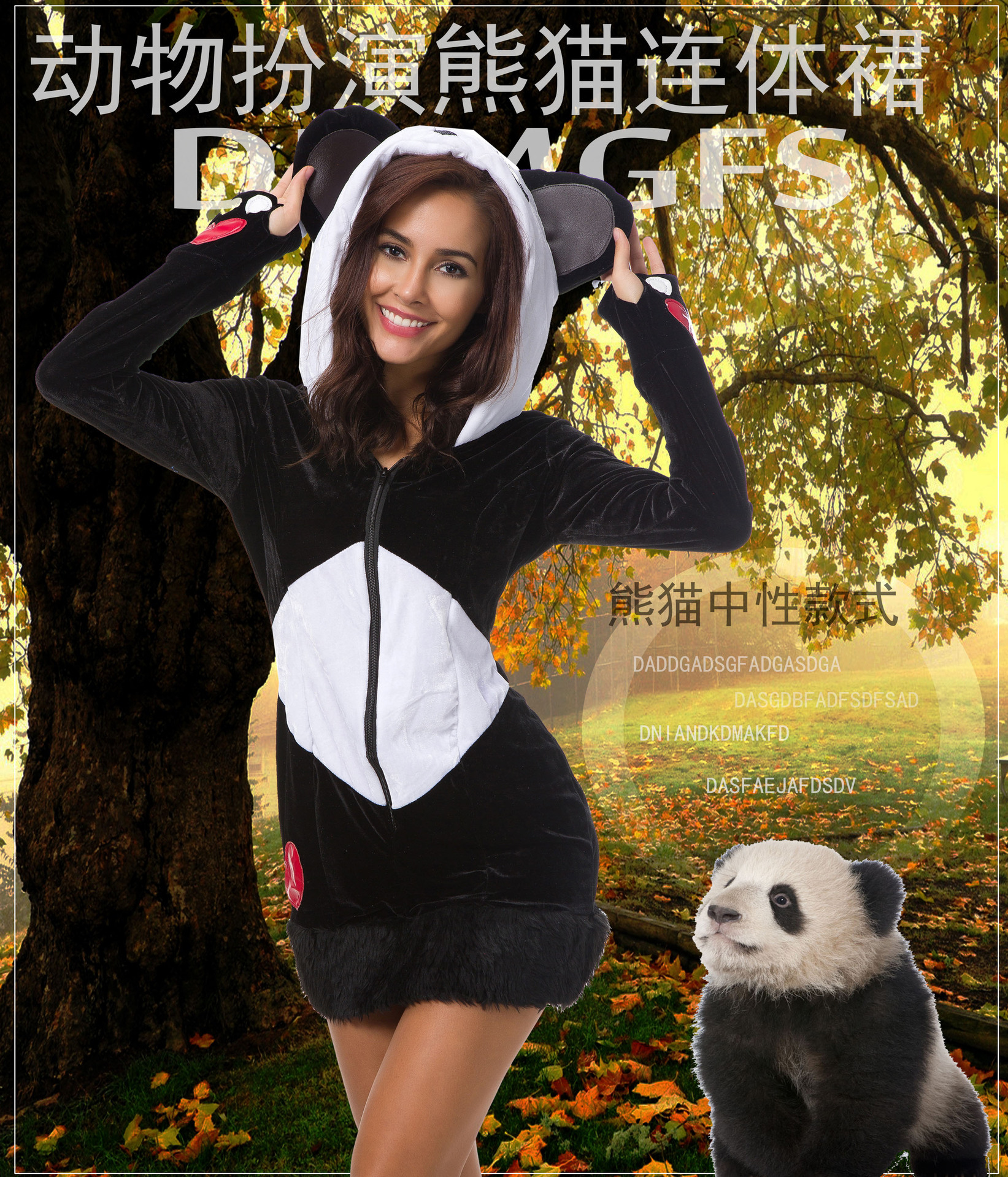 黒白のショーの役は女装の動物の毛の服の猫の女の服装のハロウィンを演じます。