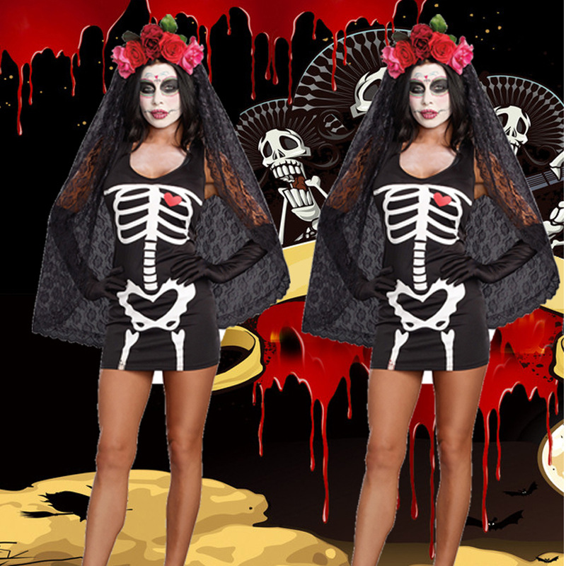 新型ハロウィーンアニメ女性スカル花嫁セクシー万聖服コスプレハロウィーン衣装