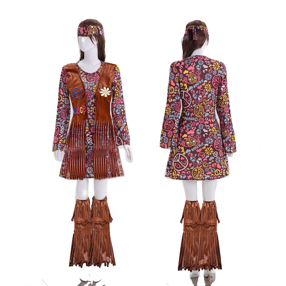 レトロ女性フリンジヒッピー衣装hippieコスチュームハロウィーンcos衣装原始部族女神