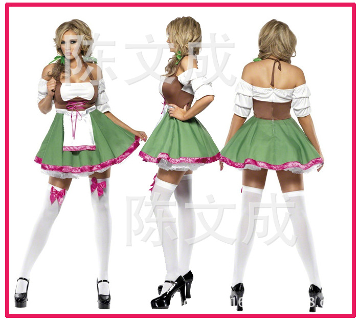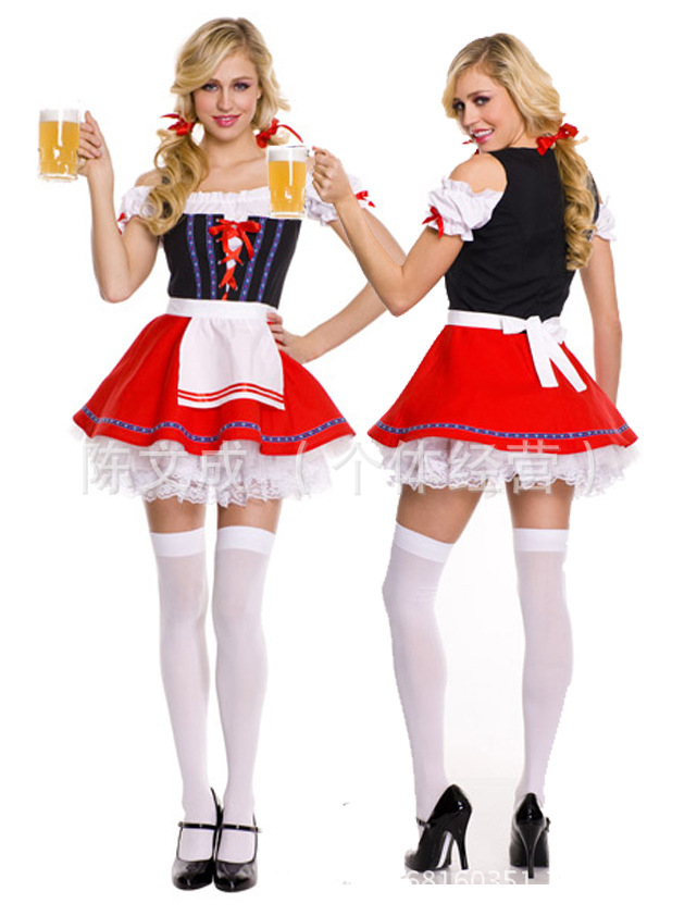 ビール祭りの女性は服装のメイドゲームの制服を演じます。