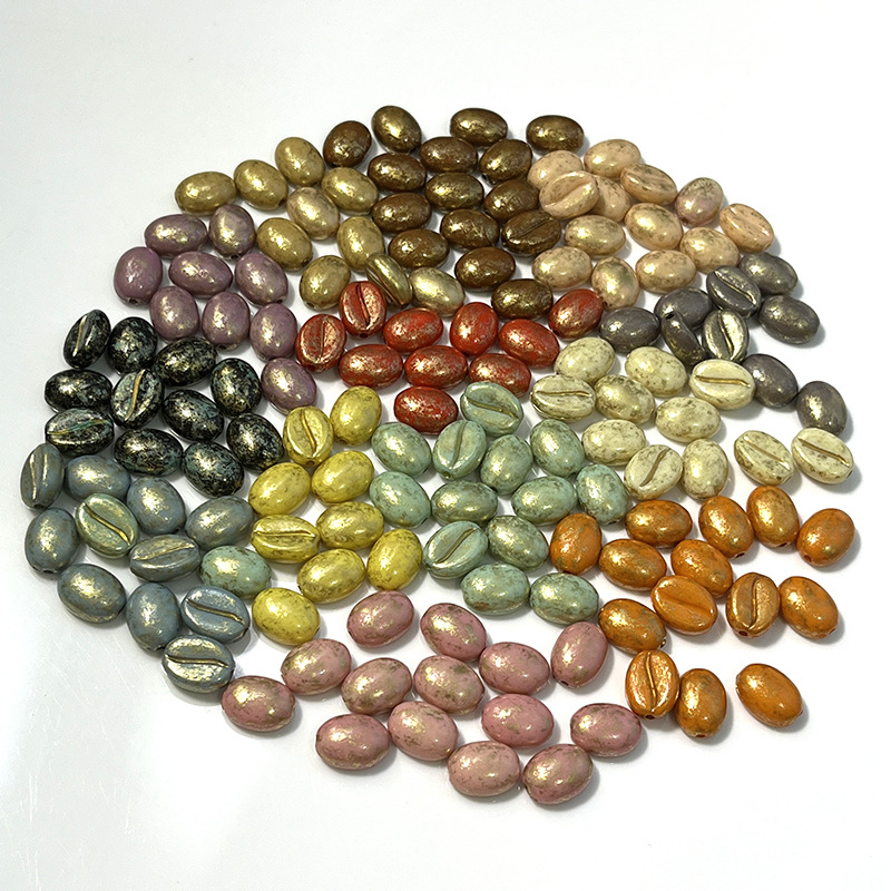 レトロな描金ピカソコーヒー豆はチェコビーズのアクリルビーズdiy手作りビーズ材料のチェーンビーズに似せている