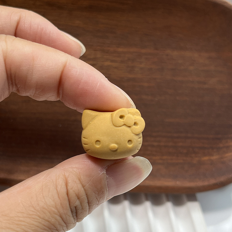米カレー色の動物の頭は穴のビスケットの猫のミミの頭の樹脂の部品を通します。
