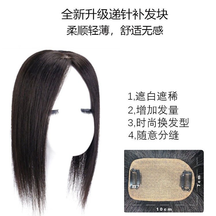 ダブル針15*17*45cmの本物のかつらの頭の上に髪を補充する手織りの女性は白髪を隠して薄くて通気性がある